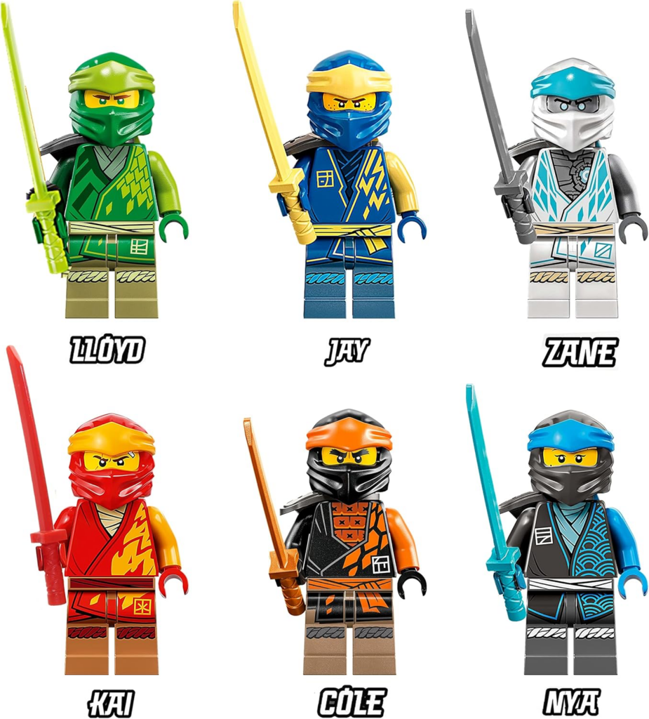 Lego Ninjago Core Minifigure Combo Pack – Lloyd, Jay, Kai, Cole, Zane, NYA (with Weapons)